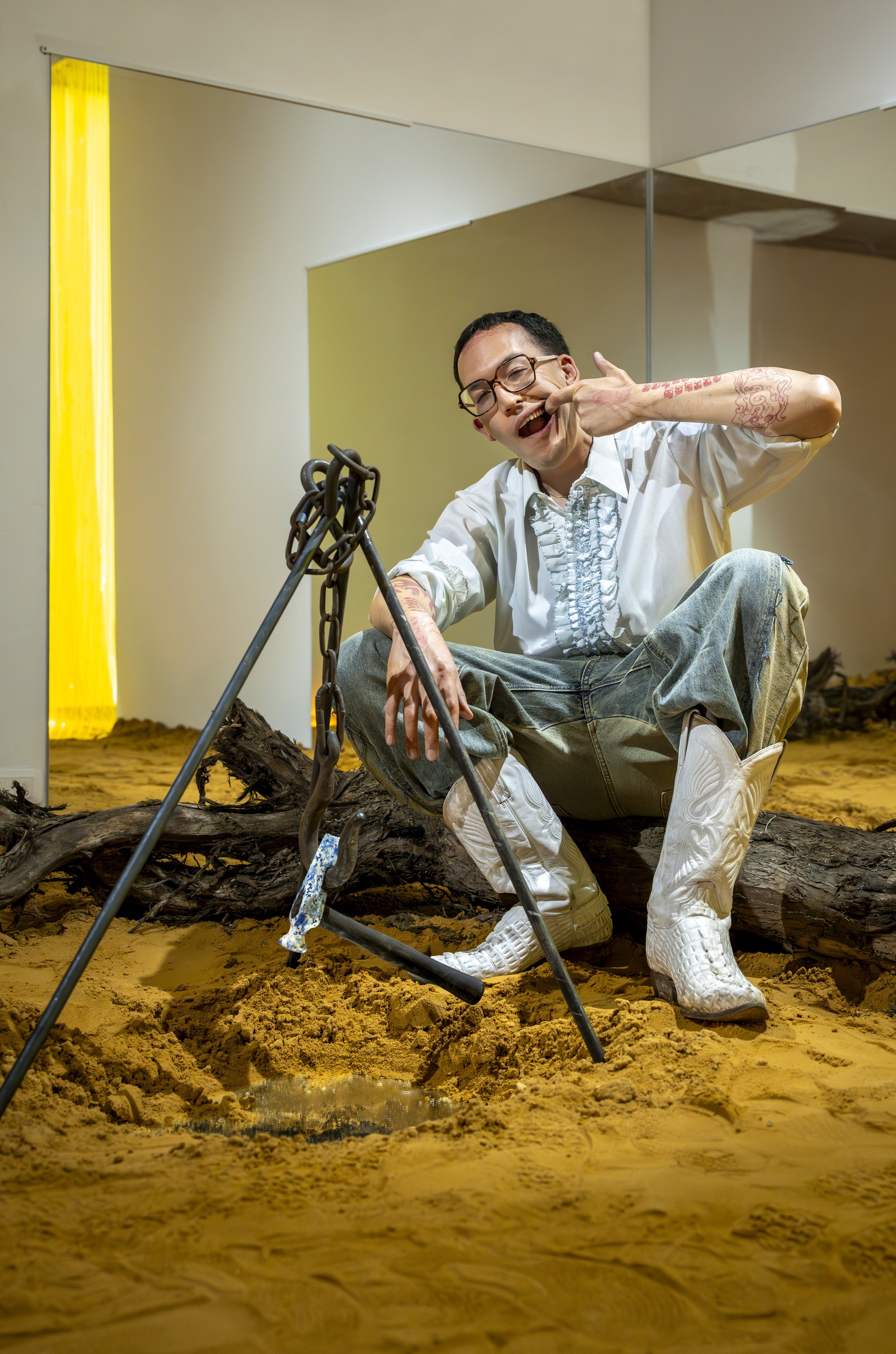 La práctica de Charlie Mai explora cómo las vidas de la diáspora china se mediatizan a través de objetos cotidianos, decoraciones populares y archivos fragmentados, moldeados por imaginarios raciales estadounidenses, el capitalismo y la amnesia histórica. Trabajando en instalación, escultura, cerámica y fotografía, Mai investiga cómo estos materiales cargan historias invisibilizadas de migración y memoria.