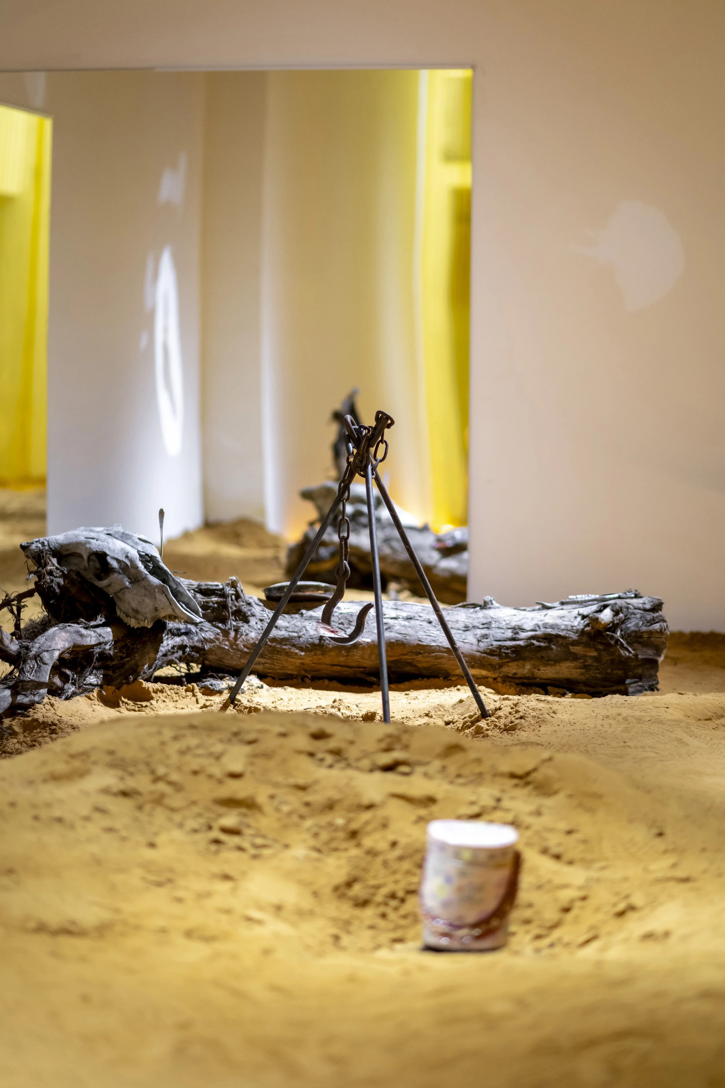 “The Crime” unfolds the consequences of this American logic through the representation of a murder. Returning to the classic image of the duel in the Old West, this section reconfigures violence not as spectacle, but as evidence. There are no gunshots: only weapons abandoned in the sand and smoke suspended in the air. The archetypal Western gunmen are reinterpreted as Chinese railroad workers, indispensable figures in the construction of the Transcontinental Railroad between 1864 and 1869, yet historically excluded from the mythic narratives of the cinematic genre.